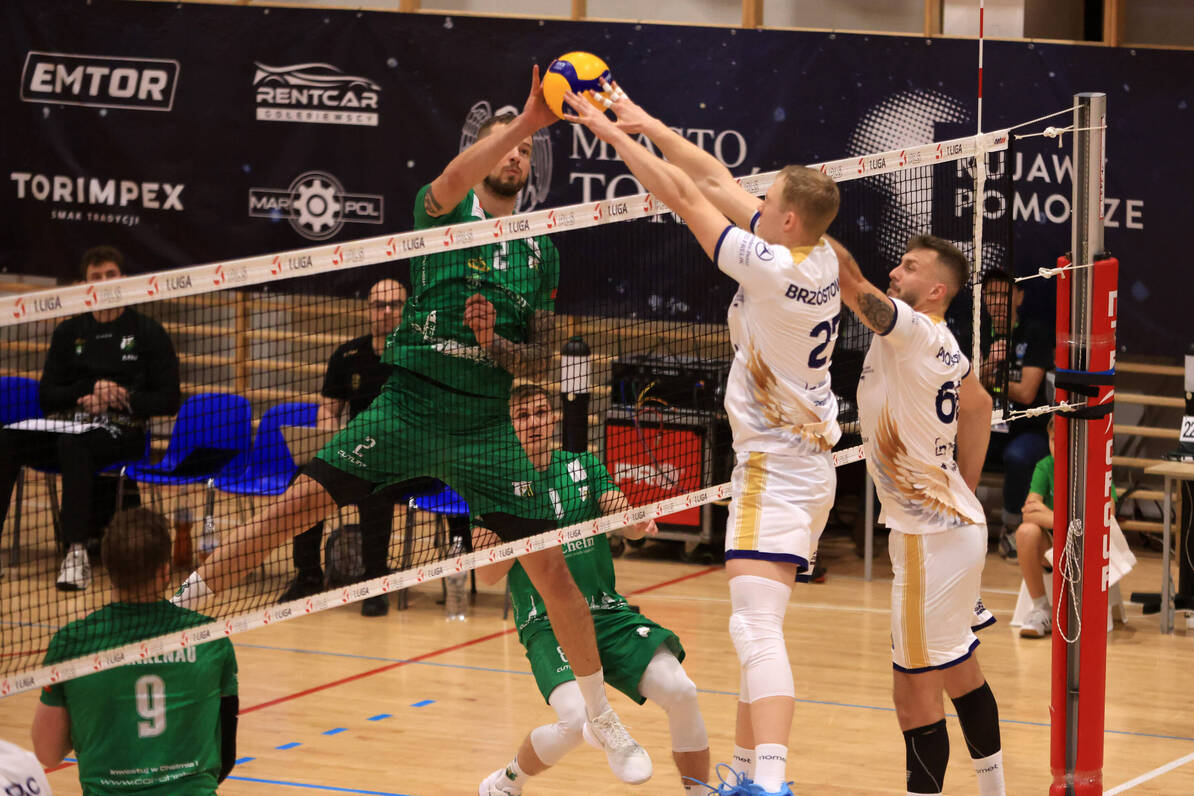 W sobotnie popołudnie pierwsi na parkiet wybiegli siatkarze z Torunia i Chełma. Gospodarze to beniaminek tegorocznych rozgrywek. Przed pierwszym gwizdkiem mogli pochwalić się czterema zwycięstwami. Z kolei chełmianie to jedyna ekipa, która nie przegrała jeszcze żadnego spotkania i jest liderem tabeli. To właśnie zespół gości jest stawiany w roli faworyta tego starcia.